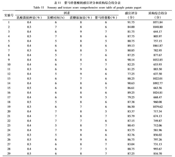 【摘要】:本实验在单因素实验的基础上,以模糊数学感官评分为指标,通过响应面实验设计对紫马铃薯酸奶的工艺及配方进行了优化,得到其*工艺配方为:乳酸菌添加量0.46%、发酵时间6.09 h、蔗糖添加量7.66%、紫马铃薯粉添加量5.90%、牛奶补足至100%。方差分析显示各因素对紫马铃薯酸奶感官评分的影响:蔗糖添加量乳酸菌添加量发酵时间紫马铃薯粉添加量。通过对紫马铃薯酸奶的质构指标进行主成分分析分析,提取出两个主成分,构建出了紫马铃薯酸奶的综合质构品质评价模型,应用此模型对紫马铃薯酸奶的品质进行评判具有可行性。