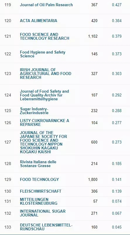 其中,食品科技类期刊2017年SCI影响因子排名如下: