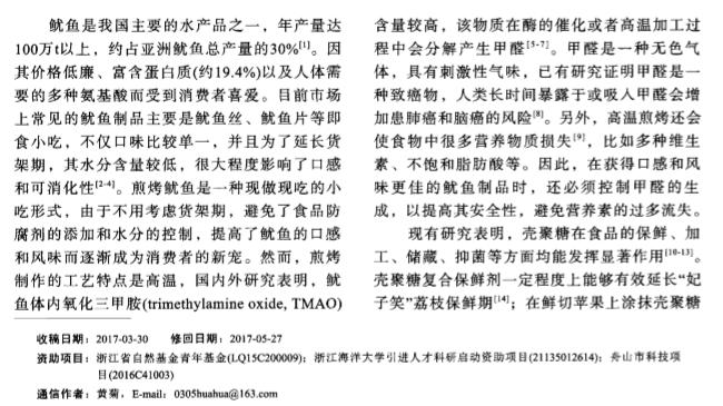 质构仪相关论文(7):壳聚糖对煎烤鱿鱼品质及甲醛生成的影响