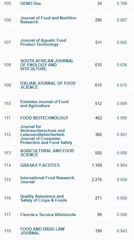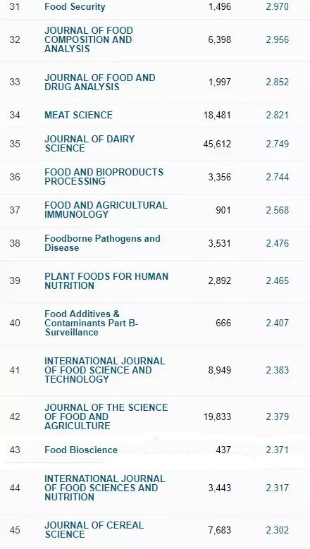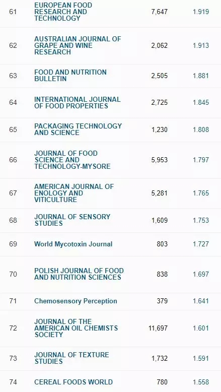其中,食品科技类期刊2017年SCI影响因子排名如下: