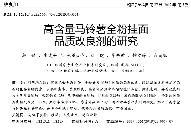 上海腾拔质构仪论文:高含量马铃薯全粉挂面 品质改良剂的研究