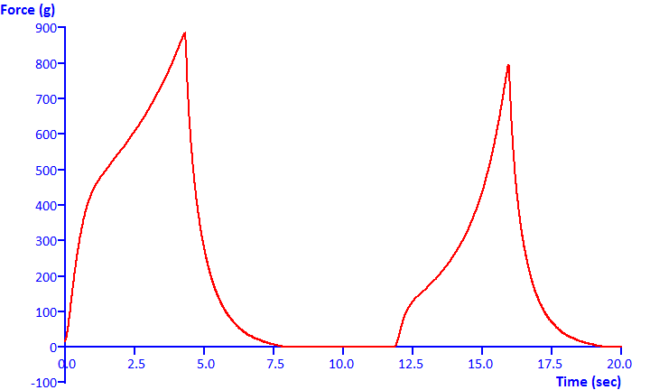 不是所有的产品都有脆性,但是在探头第1次压缩样品的过程中,当它们破裂时,在曲线有第1个峰的位置(在该处力值下降),出现脆性点。