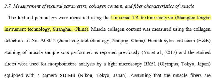 在该研究论文中,研究人员利用上海腾拔的Universal TA研究型质构仪用于测定草鱼肌肉的硬度、弹性、咀嚼性、胶着性和内聚性。