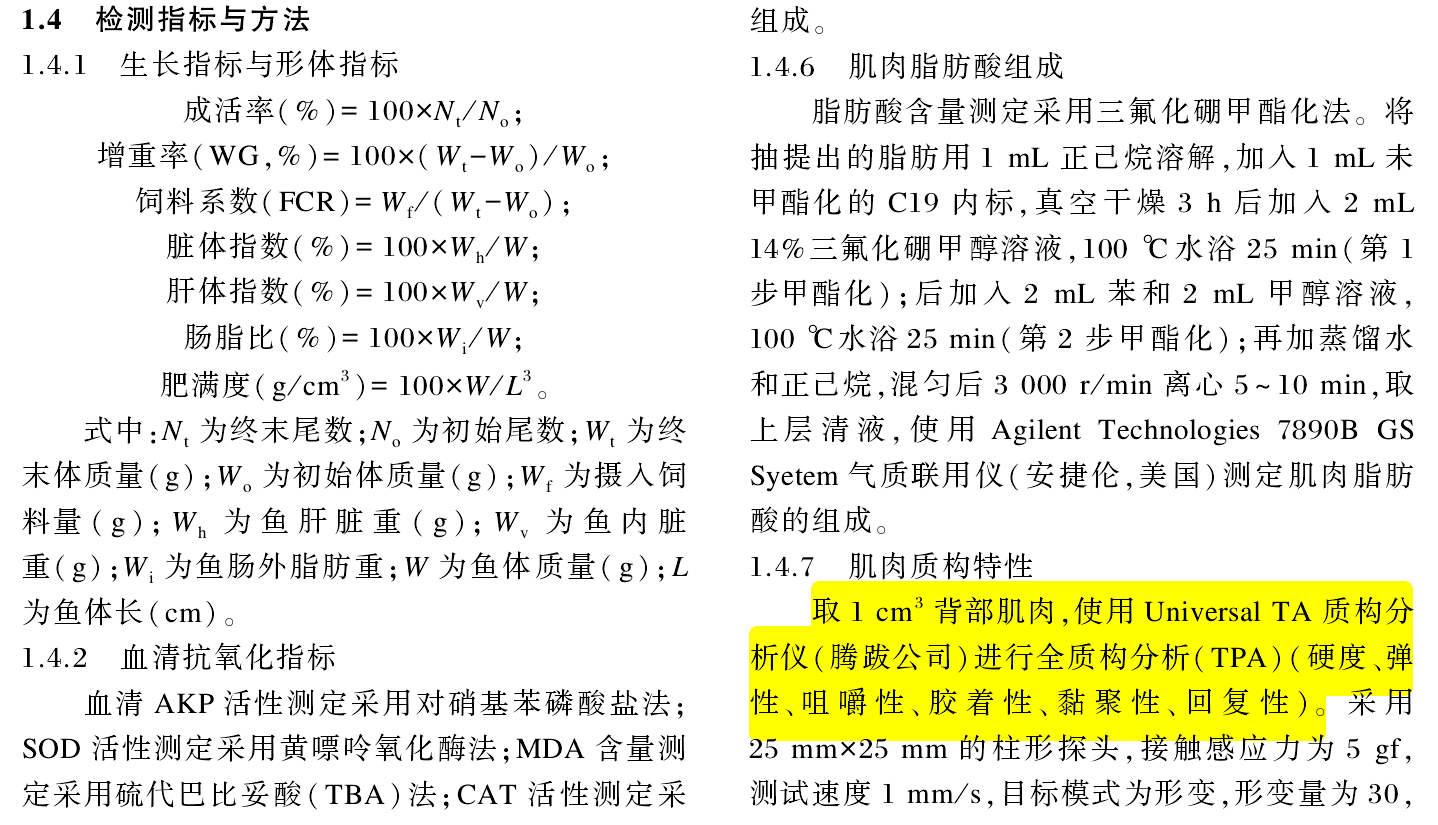 质构仪相关论文:儿茶素对草鱼生长性能、血清抗氧化指标和肌肉品质的影响
