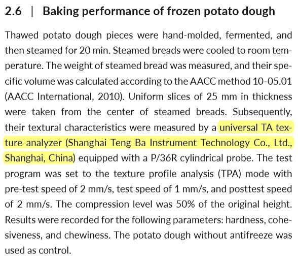 当前位置:首页资料下载上海腾拔质构仪助力上海交通大学在食品期刊发表研究论文